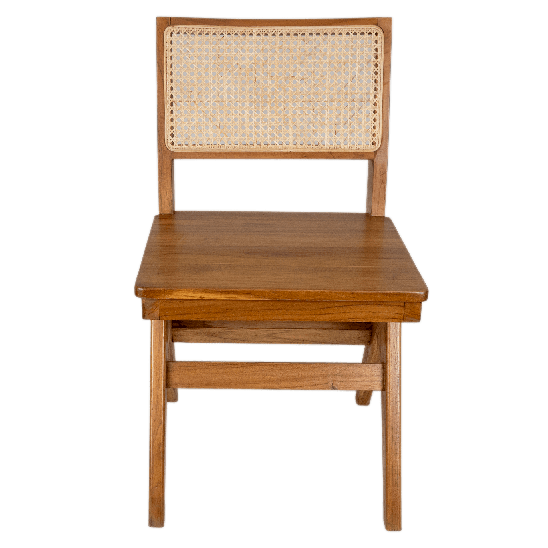 De Kayu eetkamerstoel brengt het gevoel van Bali rechtstreeks je interieur in. Met zijn lichte teakhouten frame, rotan rugleuning en stevige houten zitvlak is deze stoel een perfecte mix van natuurlijke materialen, comfort en stijl.