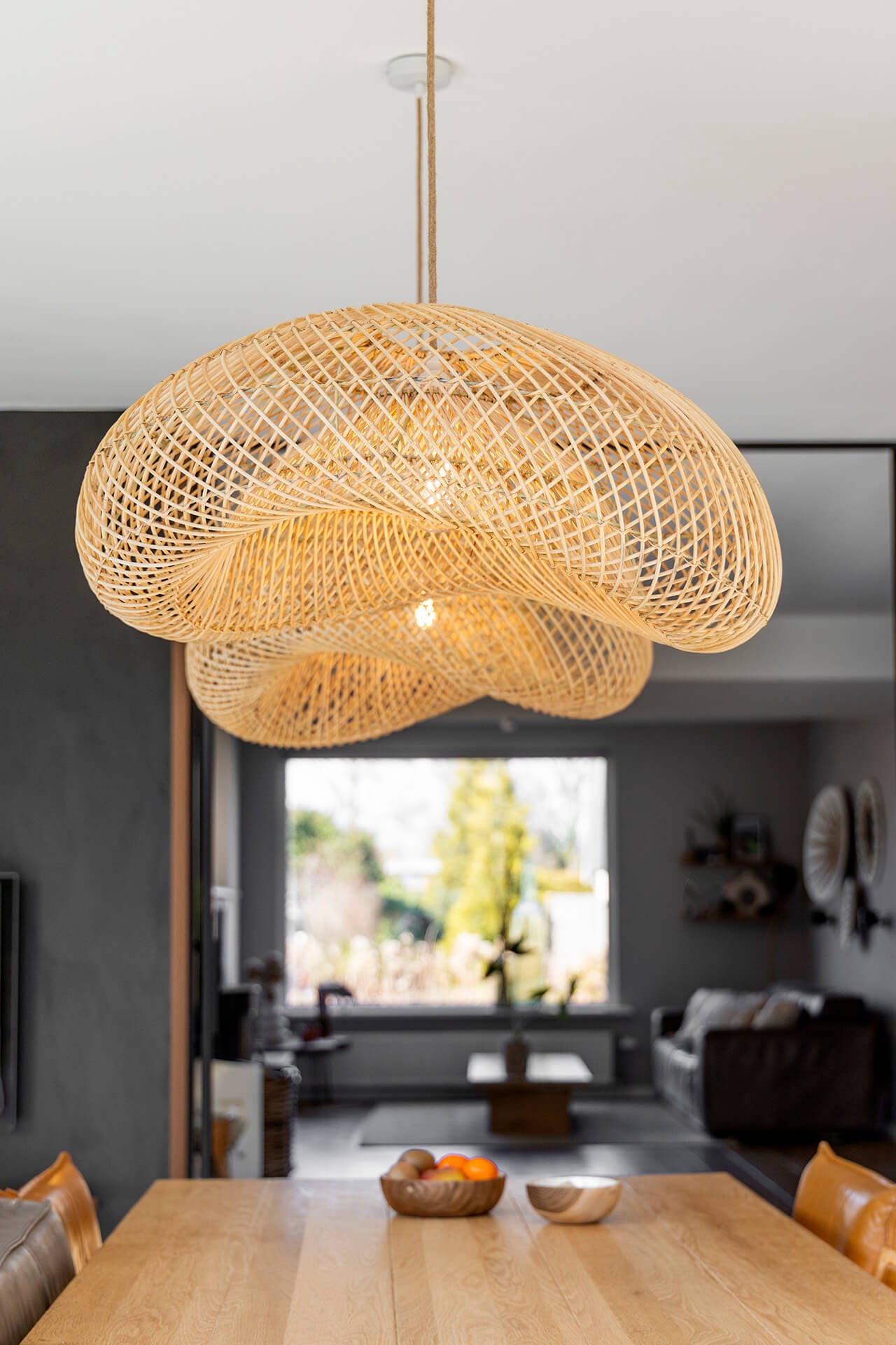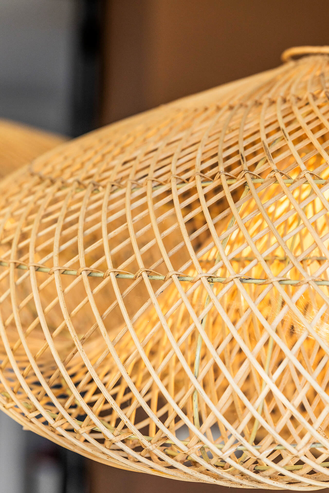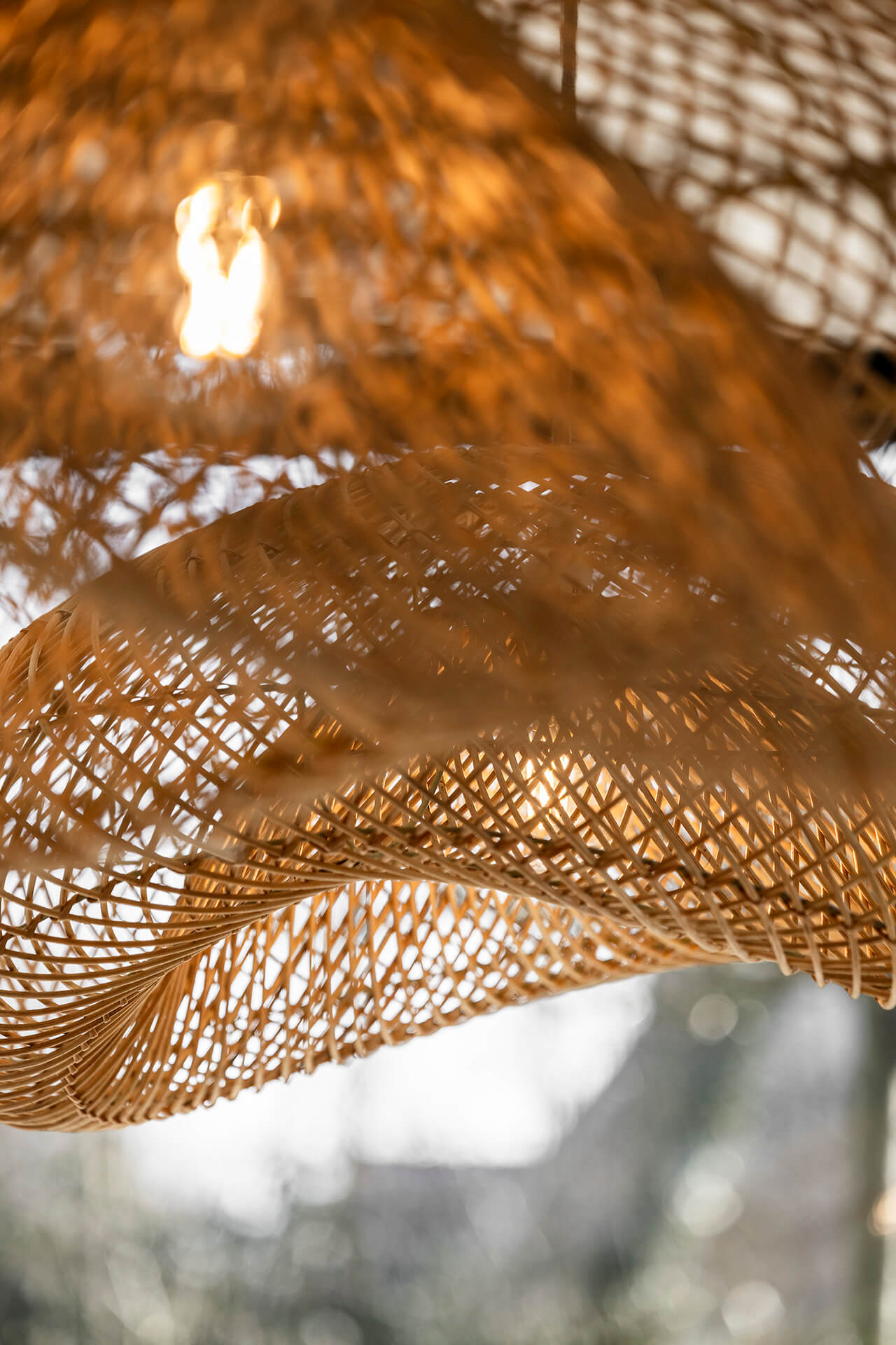 Deze hanglamp heeft een prachtige ovale 3D vorm. De lamp is handgemaakt van rotan en is een echte eyecatcher boven elke eettafel. Deze hanglamp verspreidt een zachte, uitnodigende gloed die elke ruimte verwarmt en geeft mooie schaduwen op het plafond. De natuurlijke tinten en elegante ronde vorm geven de lamp een verfijnde, ingetogen luxe uitstraling, ideaal om van jouw eetkamer een stijlvolle plek te maken.