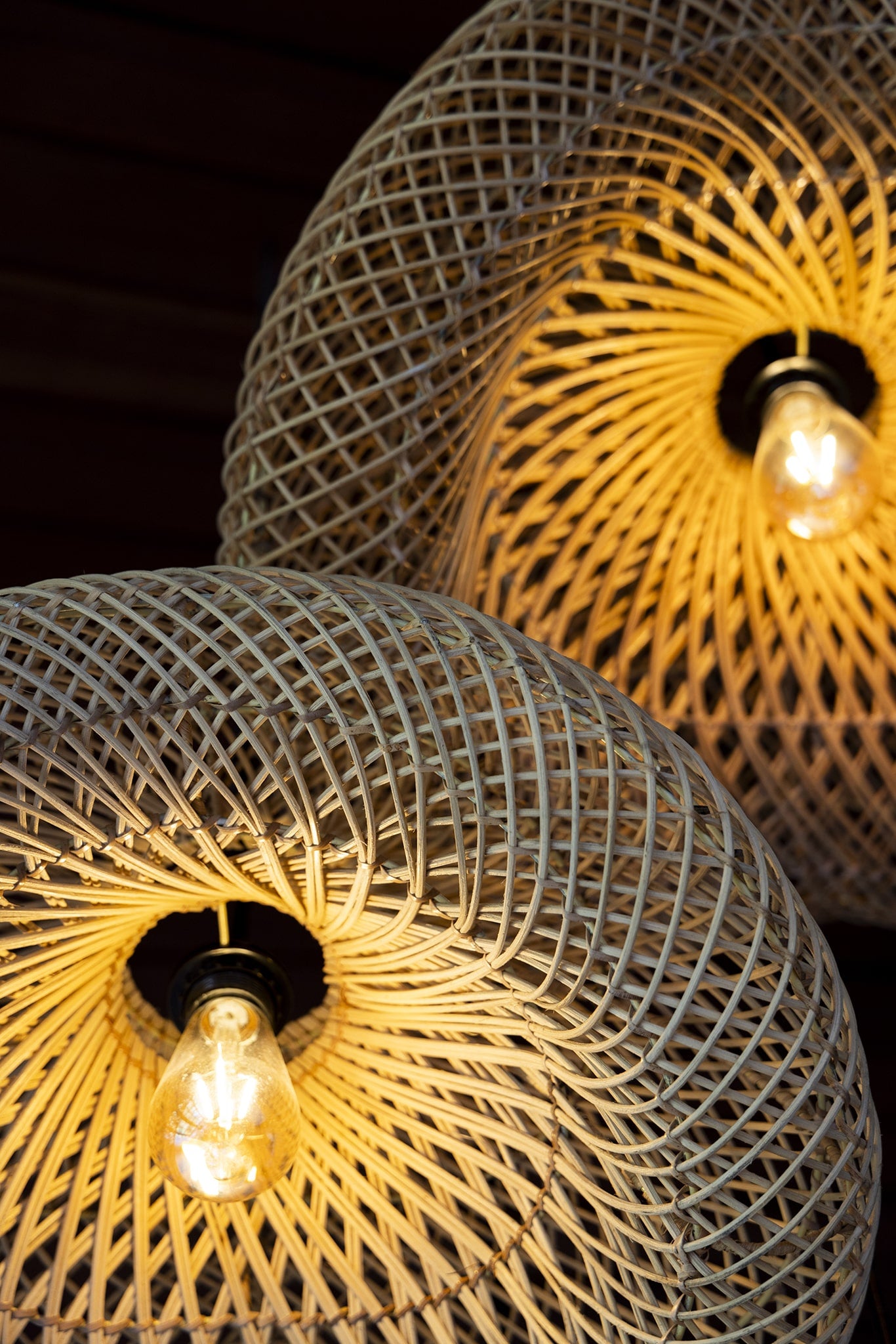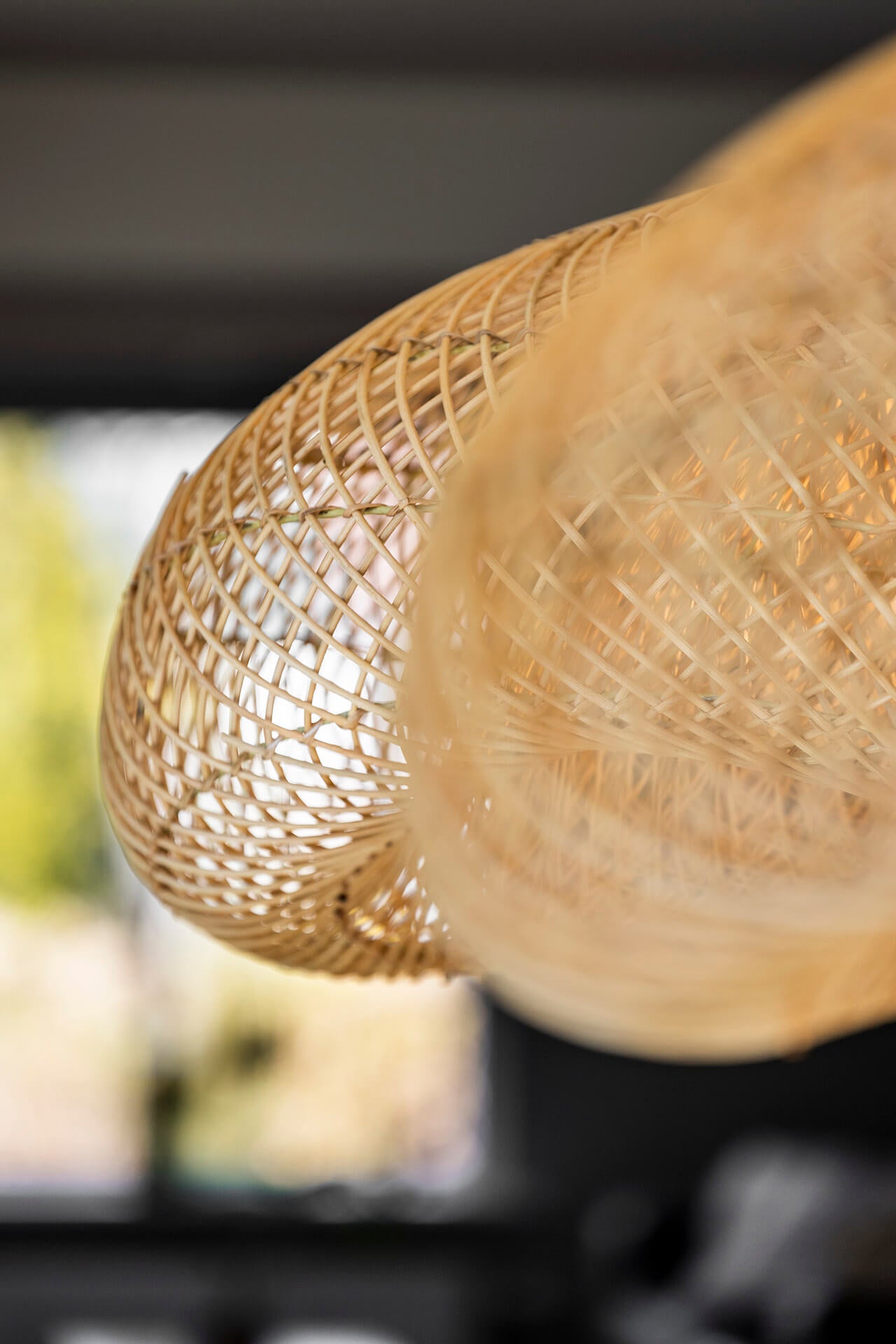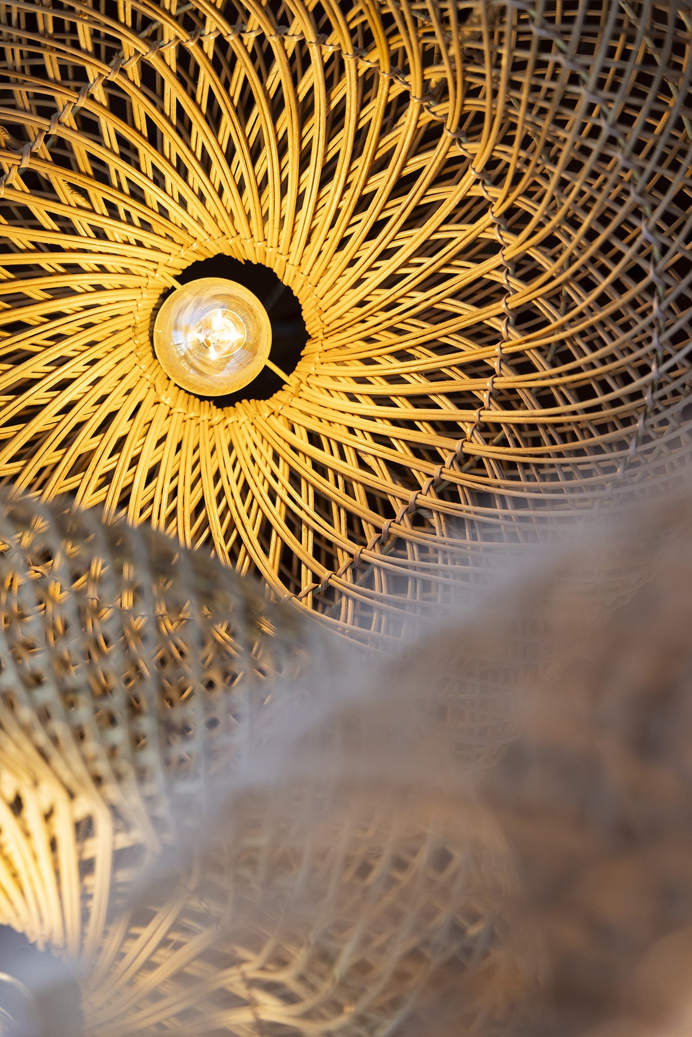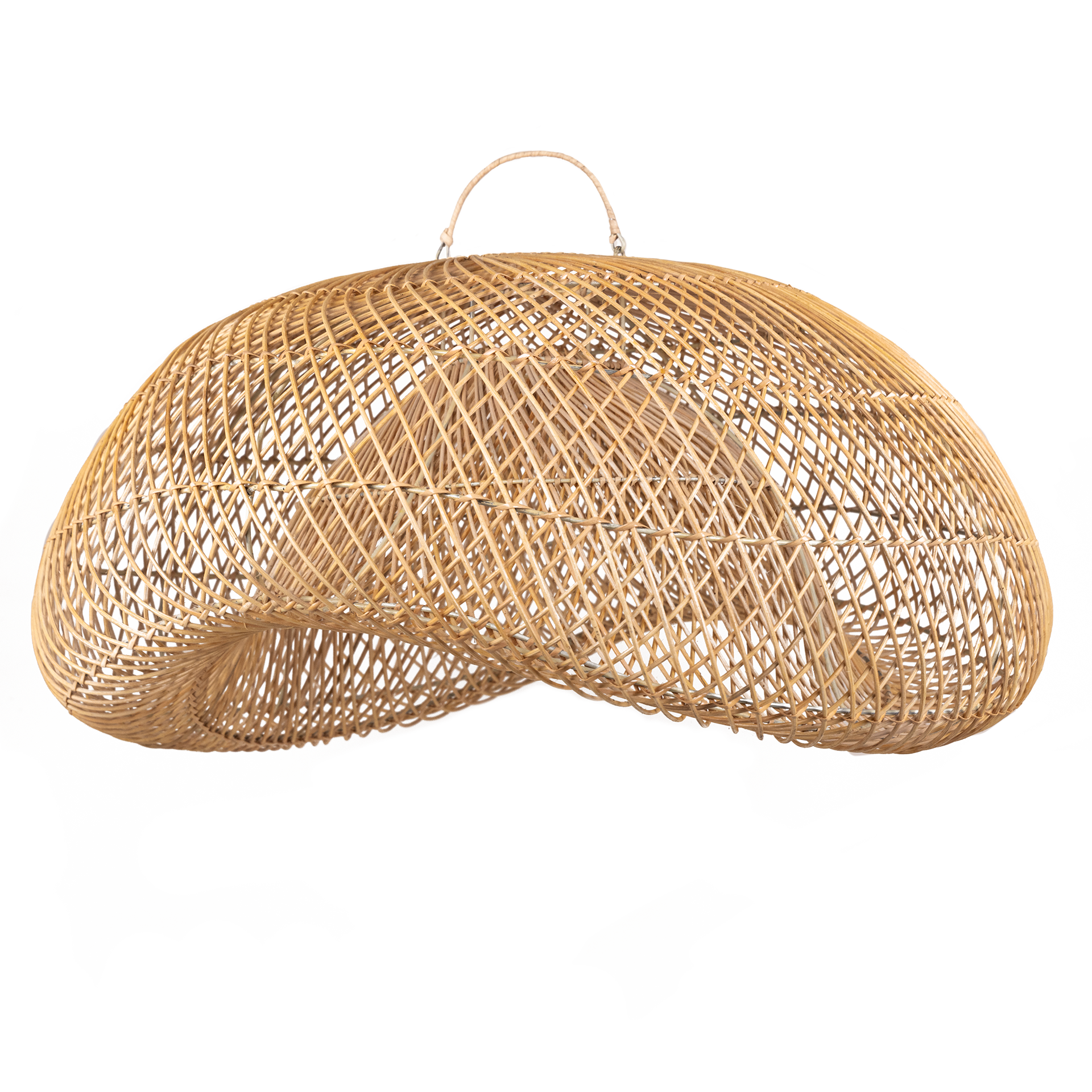 Deze hanglamp heeft een prachtige ovale 3D vorm. De lamp is handgemaakt van rotan en is een echte eyecatcher boven elke eettafel. Deze hanglamp verspreidt een zachte, uitnodigende gloed die elke ruimte verwarmt en geeft mooie schaduwen op het plafond. De natuurlijke tinten en elegante ronde vorm geven de lamp een verfijnde, ingetogen luxe uitstraling, ideaal om van jouw eetkamer een stijlvolle plek te maken.