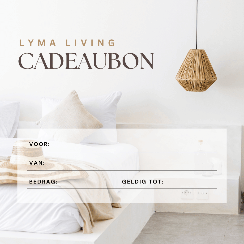 Met deze cadeaubon van Lyma living geef je geen standaard cadeau, maar iets waarmee de ontvanger zelf iets moois kan uitkiezen. Van toffe woonaccessoires tot prachtige lampen – alles om hun huis net dat beetje extra sfeer te geven. Gewoon een leuk en praktisch cadeau waar je écht blij van wordt!