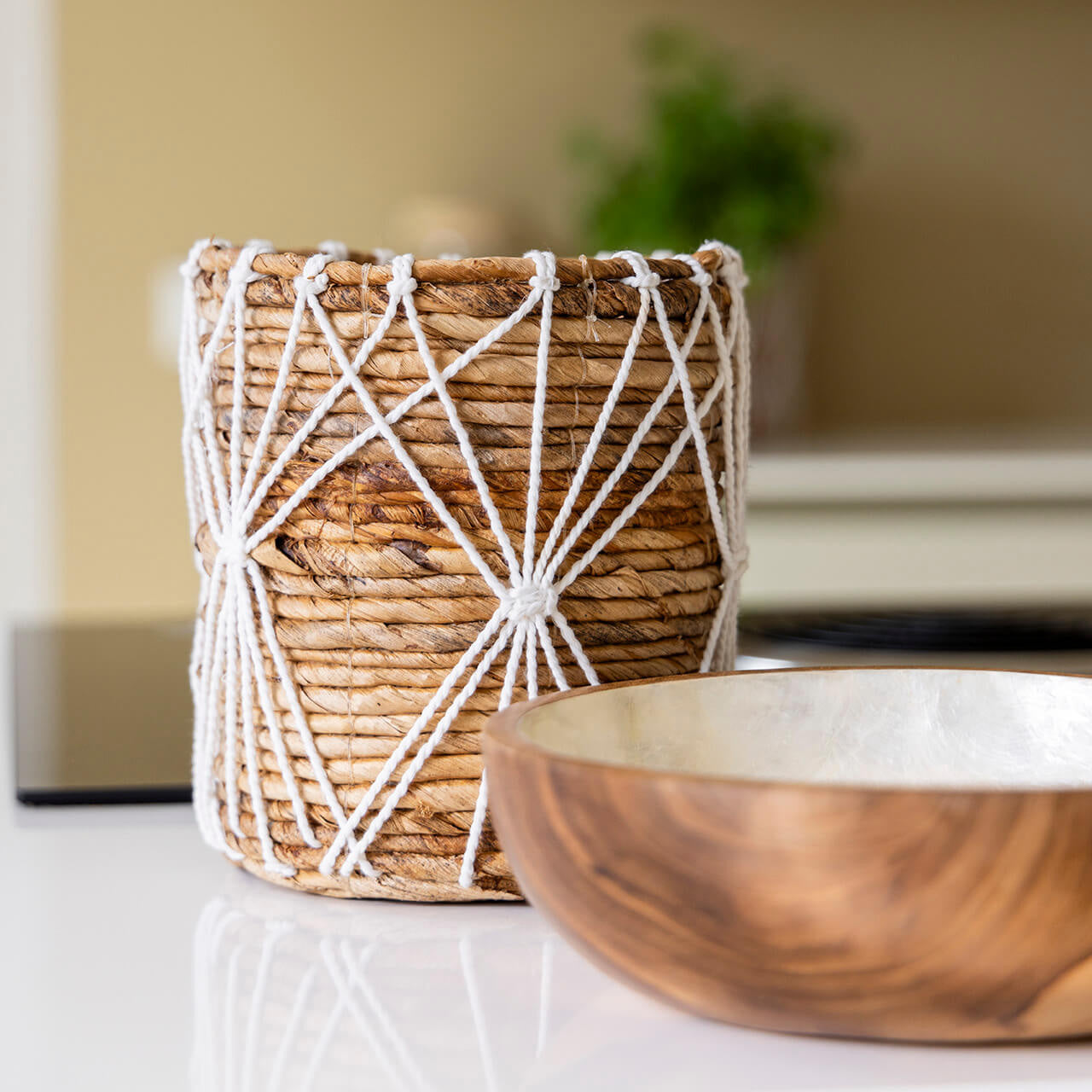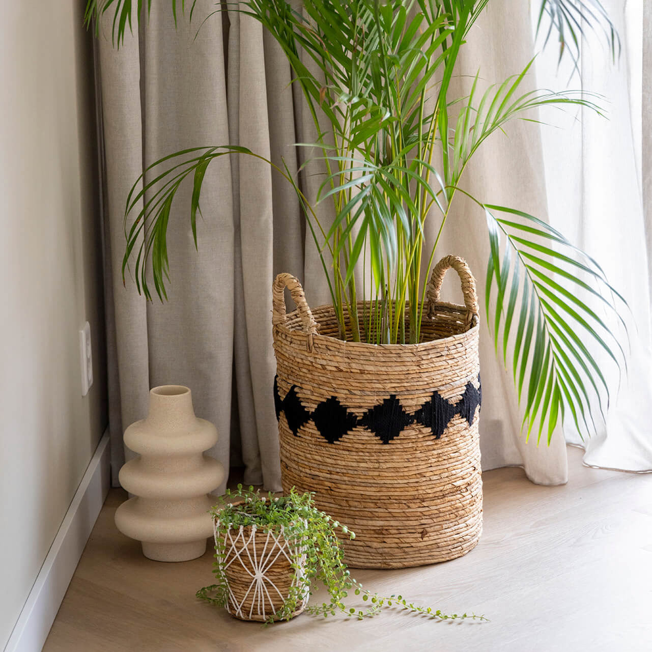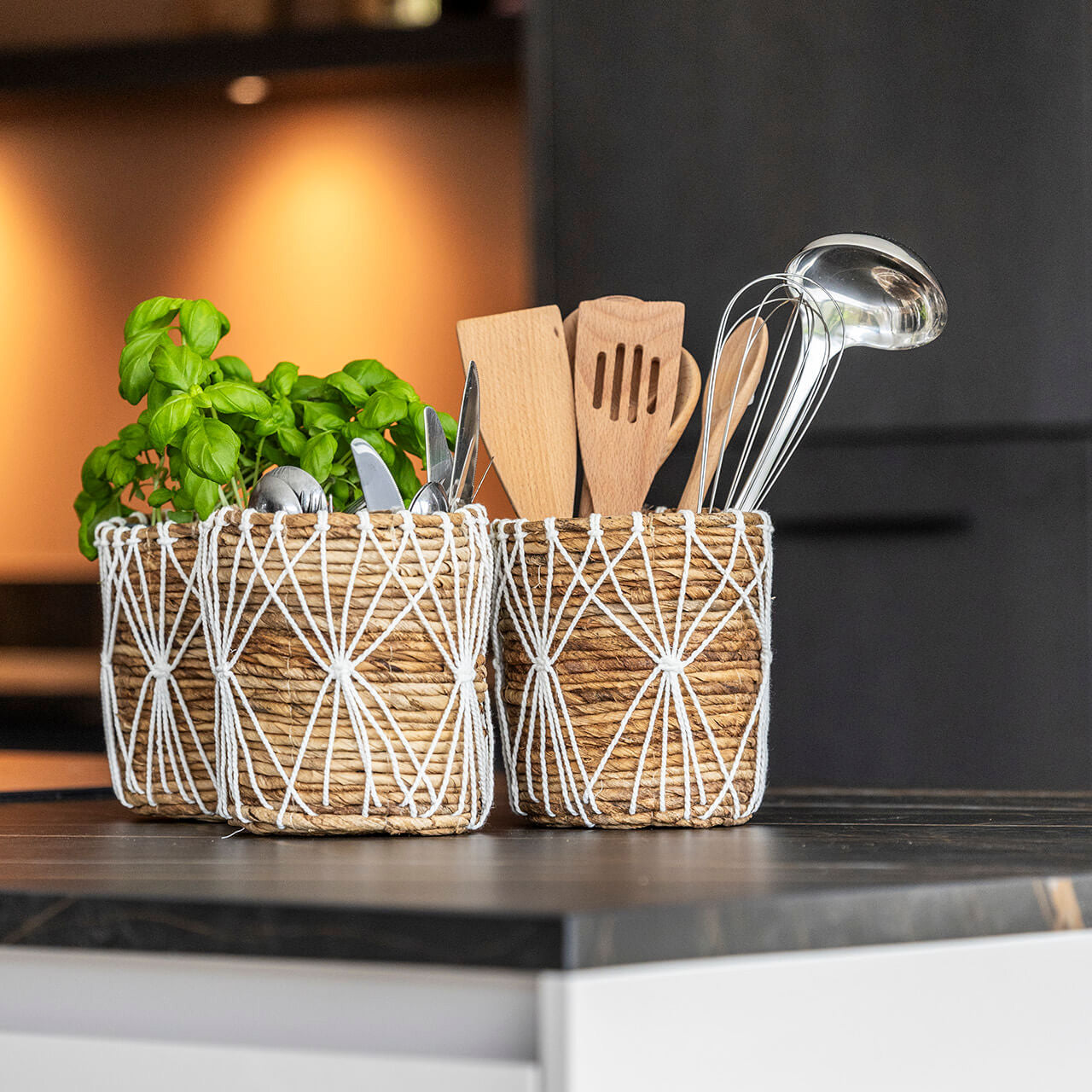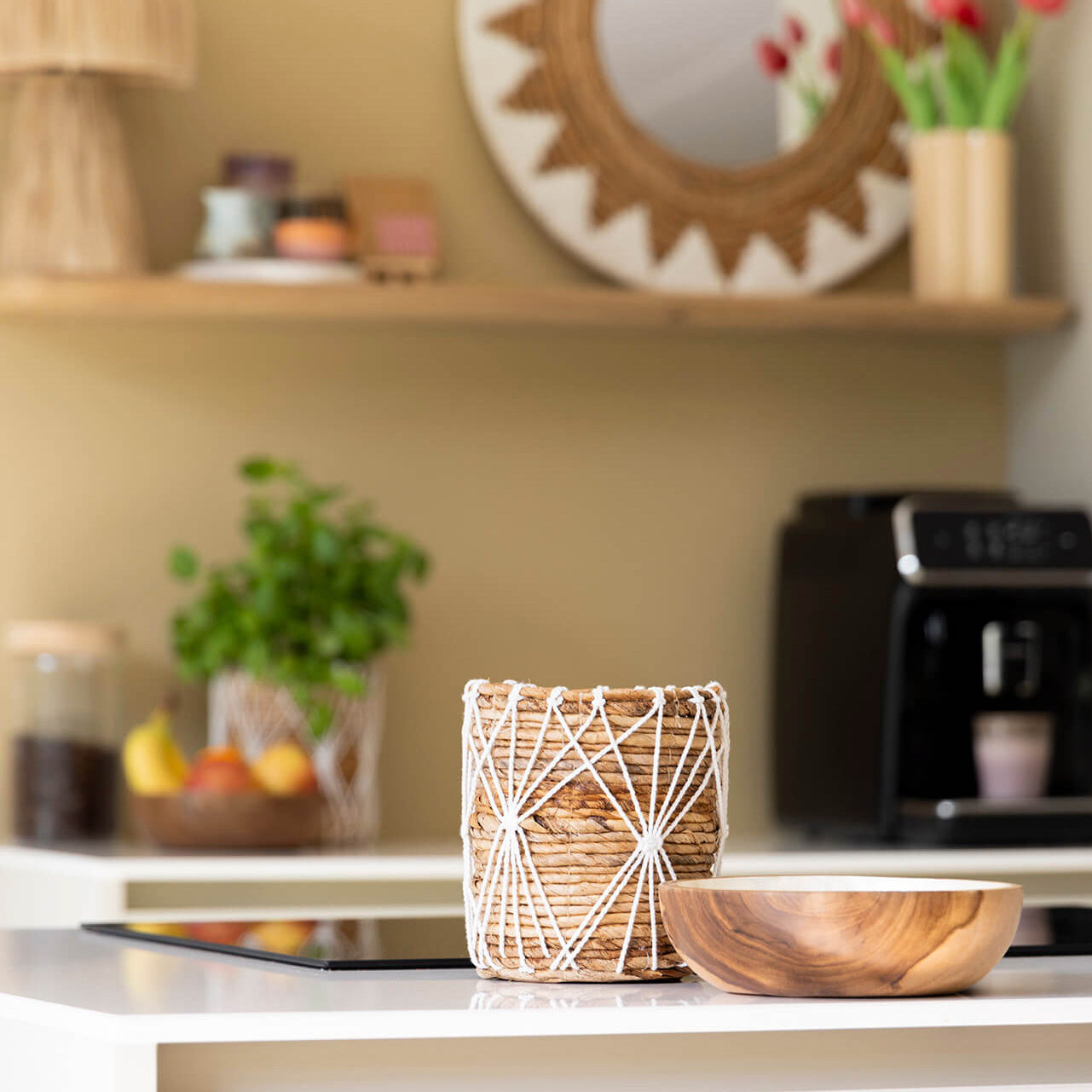 Styling tip: Gebruik meerdere manden van verschillende maten bij elkaar voor een speels effect. Je kunt bijvoorbeeld in de keuken er kruidenplantjes en keukengereedschappen in plaatsen.