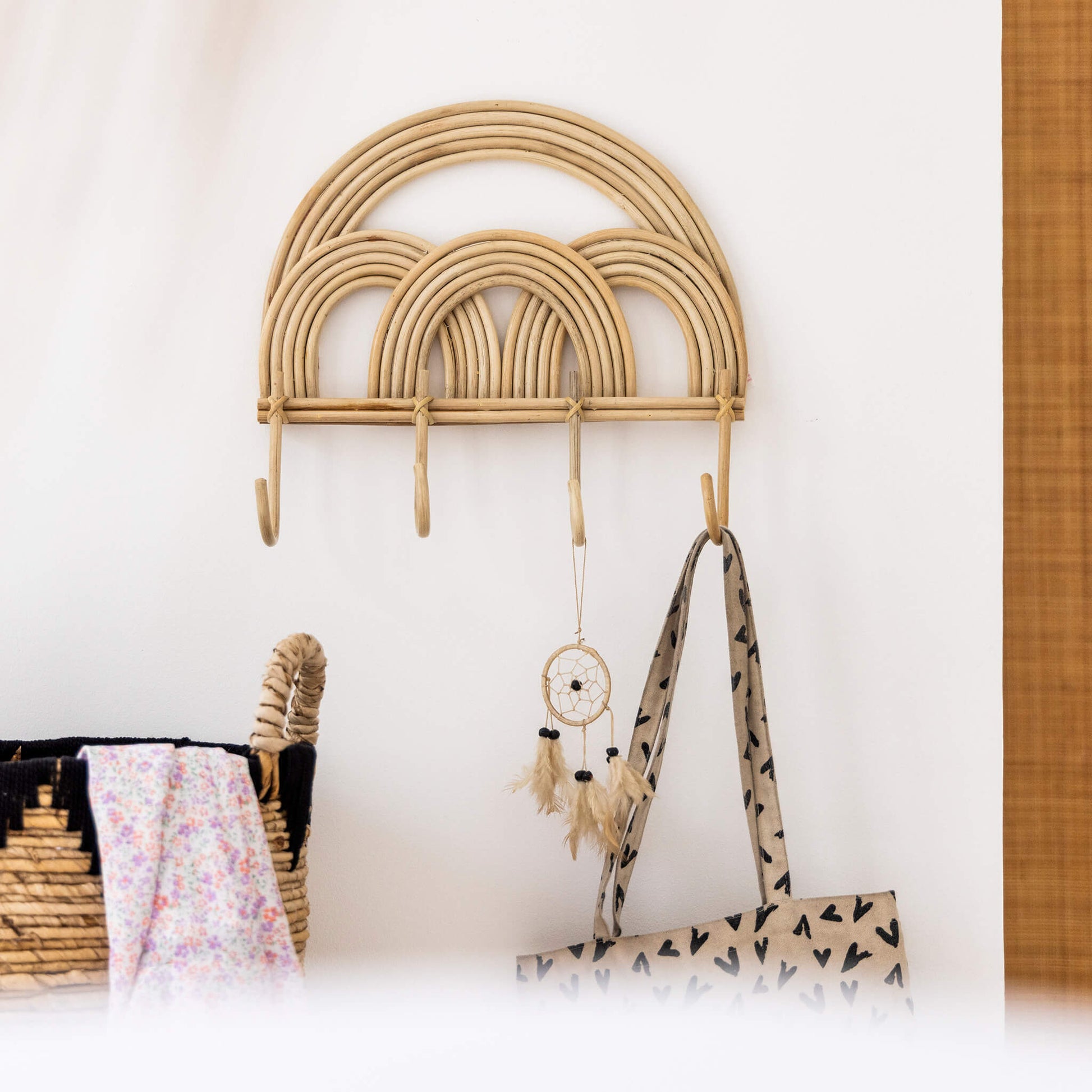 Deze kinderkapstok staat super leuk in de kinderkamer, babykamer of om kinderjassen aan op te hangen in de hal. De kapstok is gemaakt van rotan en heeft mooie gebogen vormen. De kapstok is leuk te combineren met andere items uit onze collectie, bijvoorbeeld de mooie wanddecoratie leeuw en de wasmanden.