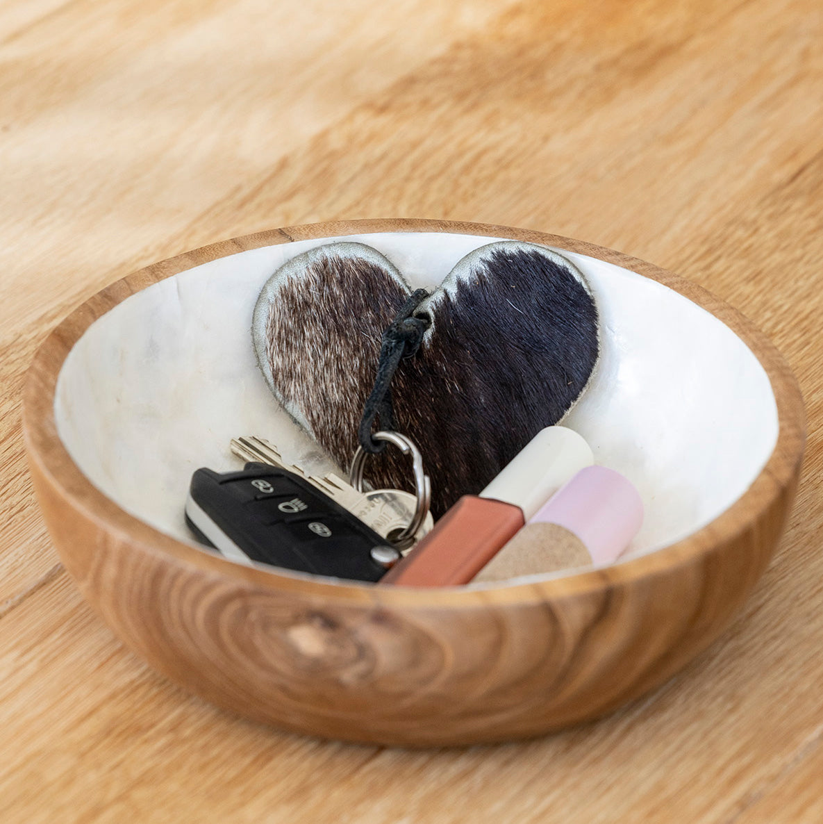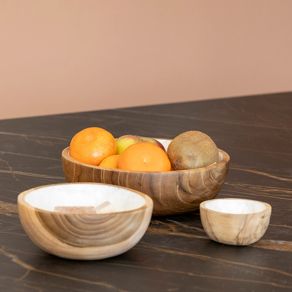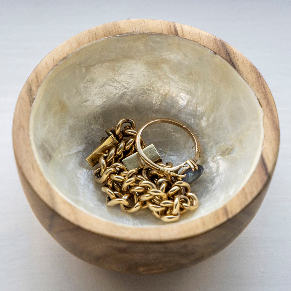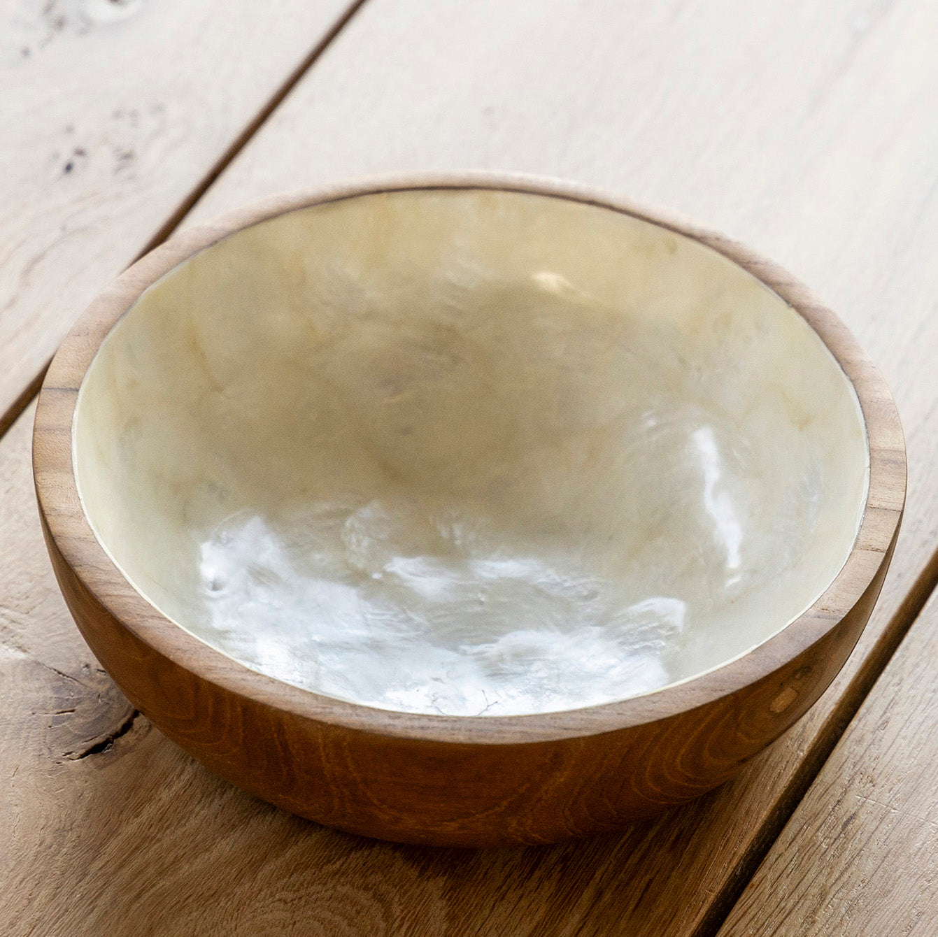 Deze schaaltjes zijn niet alleen mooi, maar ook super praktisch! De binnenkant is afgewerkt met glanzend parelmoer, wat zorgt voor een luxe uitstraling. Deze houten schaaltjes zijn in verschillende maten verkrijgbaar.