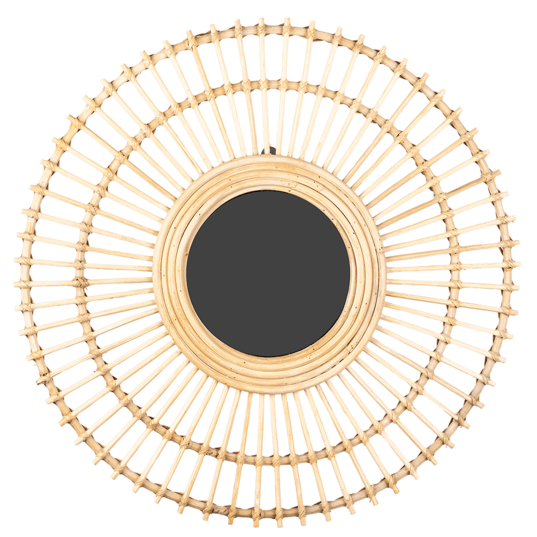 Voeg een natuurlijk accent toe aan je interieur met deze prachtige rotan spiegel! De Spiegel Indah brengt met haar verfijnde ronde lijnen en natuurlijke rotan een warme, tropische vibe in je interieur. Met een diameter van 58 cm is deze handgemaakte spiegel perfect om een vleugje bohemian charme toe te voegen aan elke ruimte.