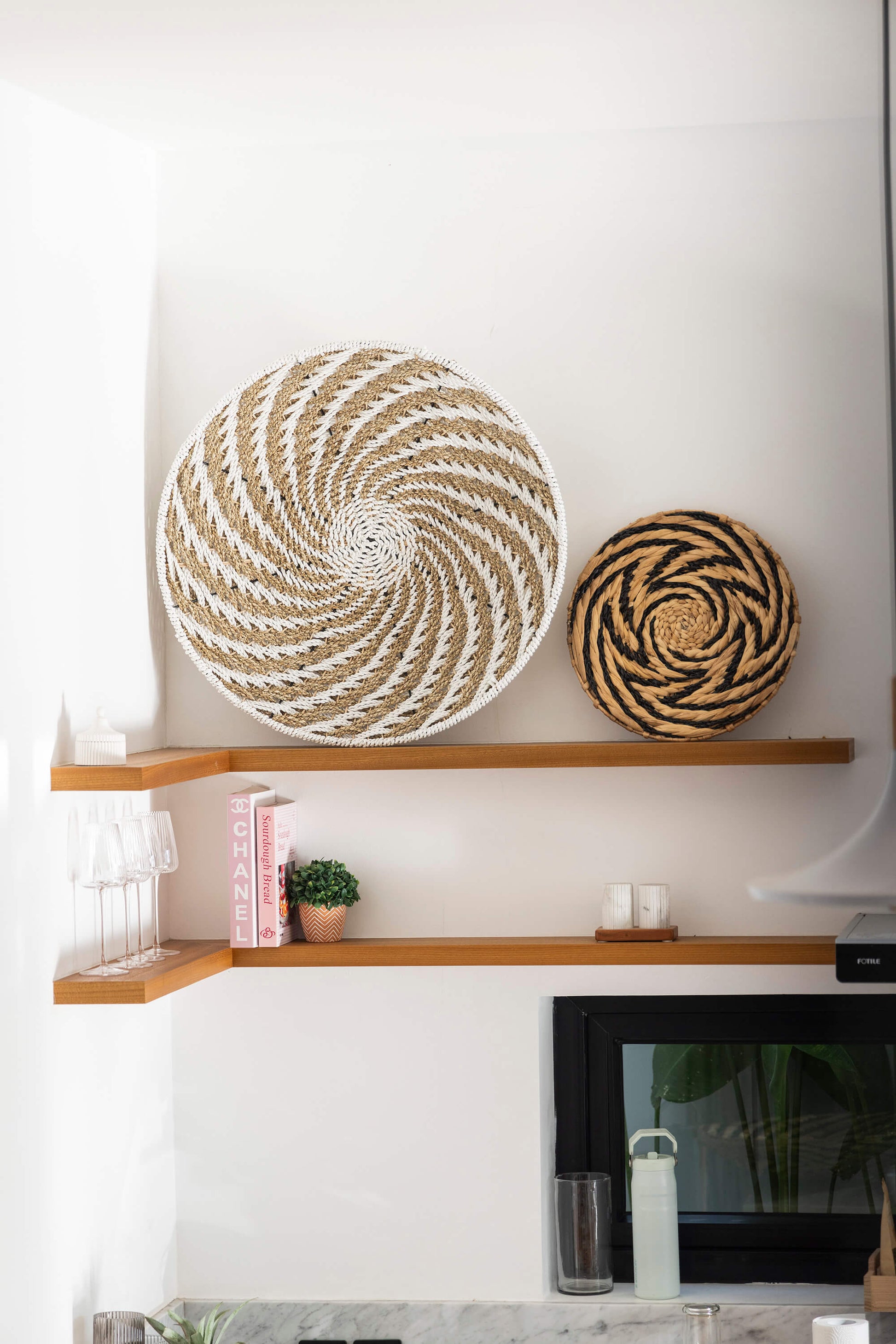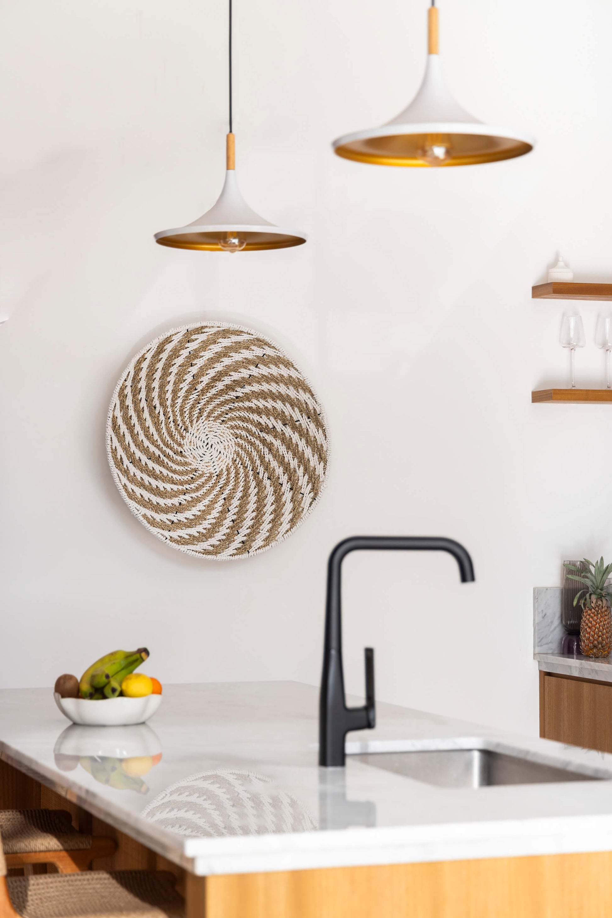 Met zijn subtiele wit en beige tinten brengt de Wandschaal Putih een tijdloze stijl in elke ruimte. Het zonvormige patroon van waterhyacint voegt textuur en karakter toe aan uw muur. Verkrijgbaar in medium (50 cm) en groot (70 cm) voor een dynamische look.