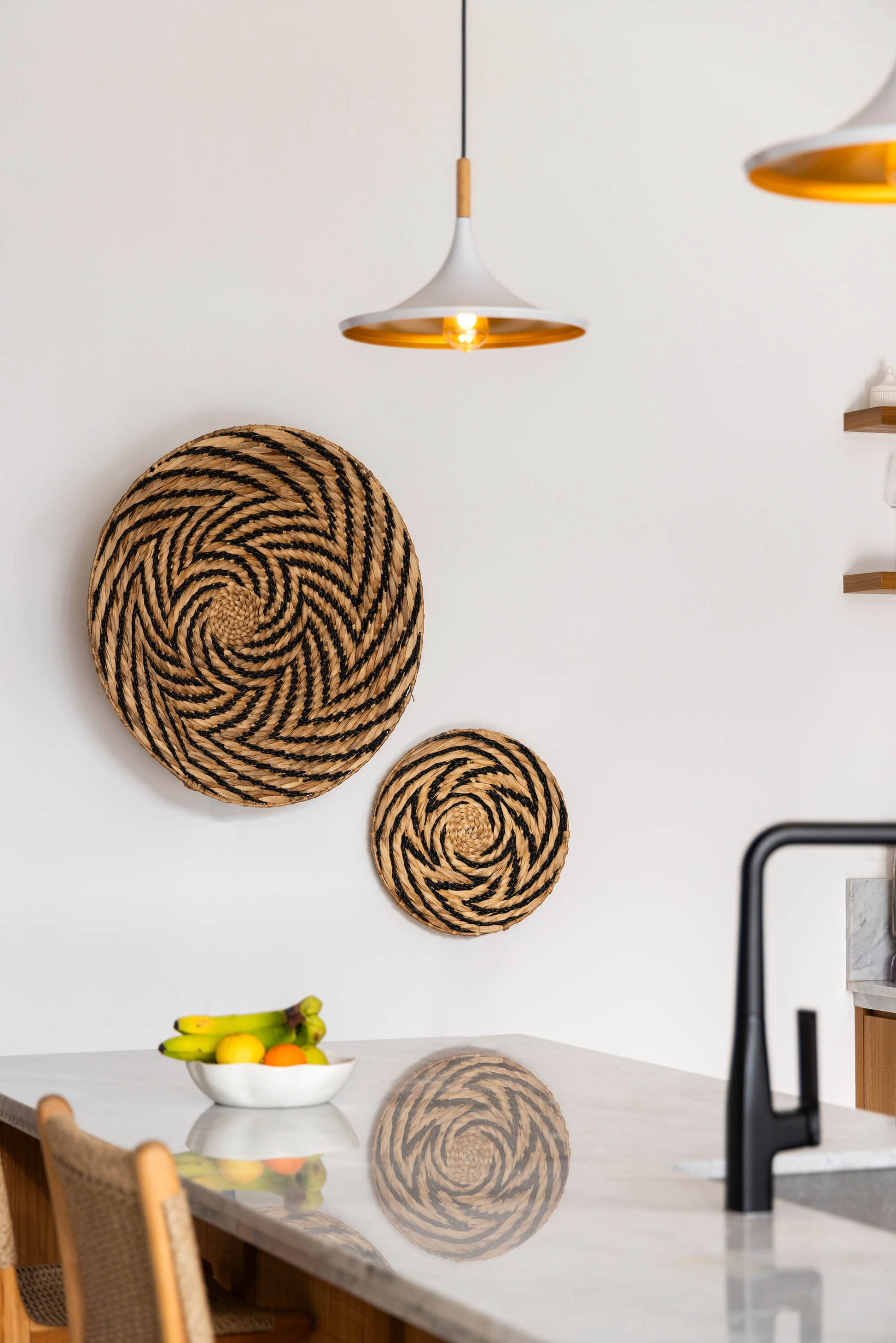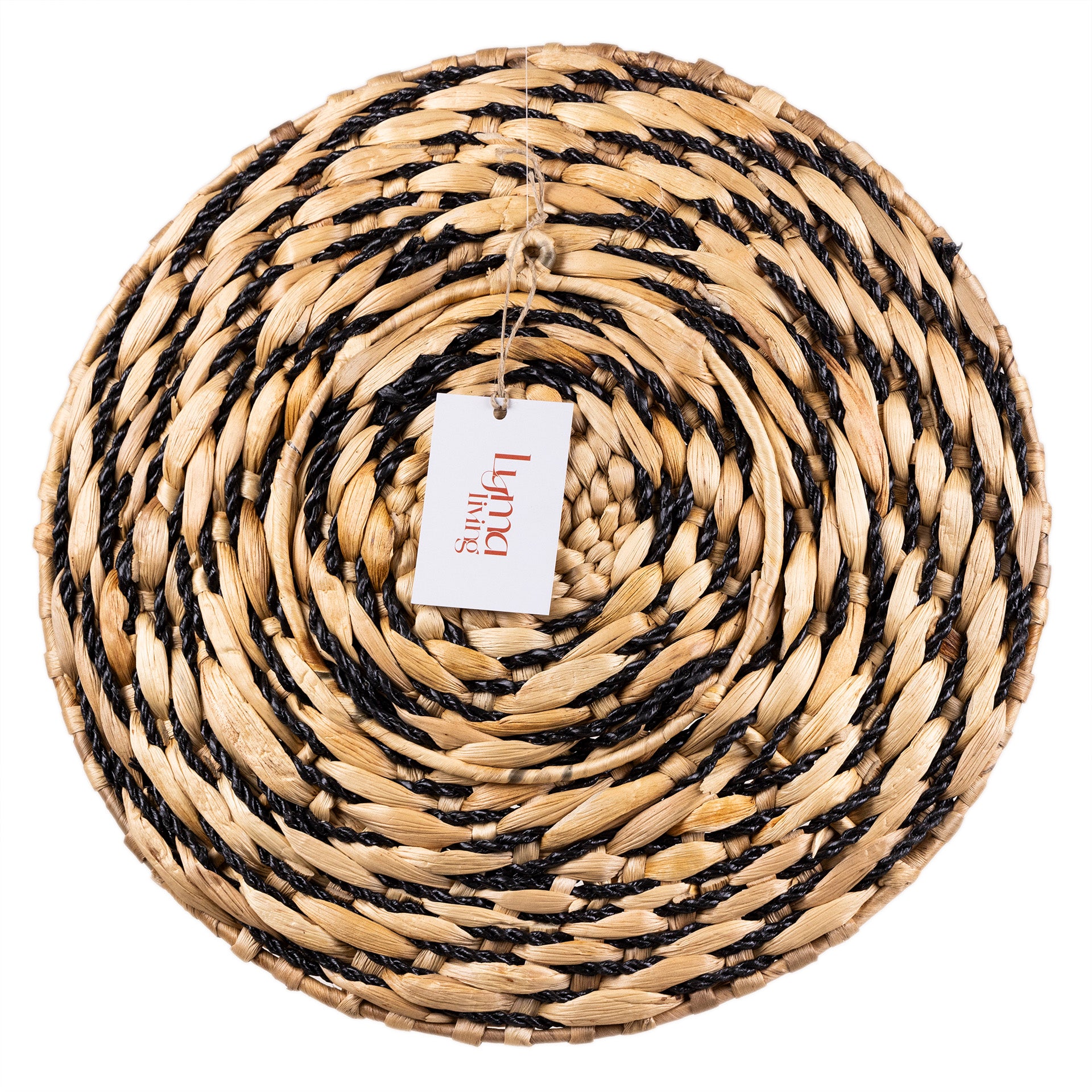 De Wandschaal Gondok in natuurlijke tinten met zwart straalt rust en eenvoud uit. Gemaakt van waterhyacint, geeft deze schaal een unieke textuur die past in elke natuurlijke of japandi inrichting. Verkrijgbaar in klein (40 cm) en groot (70 cm) om verschillende looks te creëren.